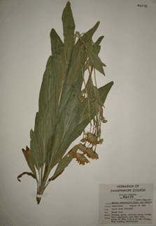 Users of this database should be aware that much of the taxonomic information was determined by students and faculty of Swarthmore College as many as 100 years ago, and as recently as 15 years ago. Taxonomic information contained in this database may be obsolete. We will be verifying this information and updating it if necessary in the near future. If you have suggestions or corrections, please e-mail rwallac1@swarthmore.edu. Thank you for your interest!