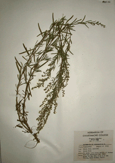 Users of this database should be aware that much of the taxonomic information was determined by students and faculty of Swarthmore College as many as 100 years ago, and as recently as 15 years ago. Taxonomic information contained in this database may be obsolete. We will be verifying this information and updating it if necessary in the near future. If you have suggestions or corrections, please e-mail rwallac1@swarthmore.edu. Thank you for your interest!