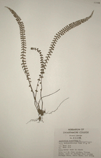 Users of this database should be aware that much of the taxonomic information was determined by students and faculty of Swarthmore College as many as 100 years ago, and as recently as 15 years ago. Taxonomic information contained in this database may be obsolete. We will be verifying this information and updating it if necessary in the near future. If you have suggestions or corrections, please e-mail rwallac1@swarthmore.edu. Thank you for your interest!