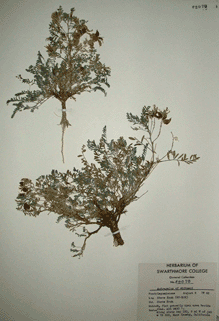Users of this database should be aware that much of the taxonomic information was determined by students and faculty of Swarthmore College as many as 100 years ago, and as recently as 15 years ago. Taxonomic information contained in this database may be obsolete. We will be verifying this information and updating it if necessary in the near future. If you have suggestions or corrections, please e-mail rwallac1@swarthmore.edu. Thank you for your interest!