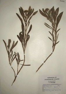 Users of this database should be aware that much of the taxonomic information was determined by students and faculty of Swarthmore College as many as 100 years ago, and as recently as 15 years ago. Taxonomic information contained in this database may be obsolete. We will be verifying this information and updating it if necessary in the near future. If you have suggestions or corrections, please e-mail rwallac1@swarthmore.edu. Thank you for your interest!