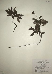Users of this database should be aware that much of the taxonomic information was determined by students and faculty of Swarthmore College as many as 100 years ago, and as recently as 15 years ago. Taxonomic information contained in this database may be obsolete. We will be verifying this information and updating it if necessary in the near future. If you have suggestions or corrections, please e-mail rwallac1@swarthmore.edu. Thank you for your interest!