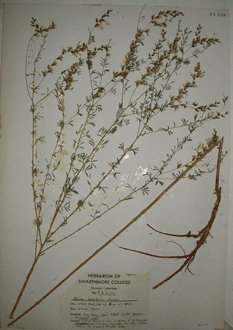 Users of this database should be aware that much of the taxonomic information was determined by students and faculty of Swarthmore College as many as 100 years ago, and as recently as 15 years ago. Taxonomic information contained in this database may be obsolete. We will be verifying this information and updating it if necessary in the near future. If you have suggestions or corrections, please e-mail rwallac1@swarthmore.edu. Thank you for your interest!