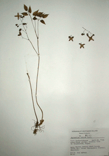 Users of this database should be aware that much of the taxonomic information was determined by students and faculty of Swarthmore College as many as 100 years ago, and as recently as 15 years ago. Taxonomic information contained in this database may be obsolete. We will be verifying this information and updating it if necessary in the near future. If you have suggestions or corrections, please e-mail rwallac1@swarthmore.edu. Thank you for your interest!