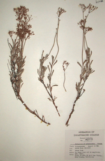 Users of this database should be aware that much of the taxonomic information was determined by students and faculty of Swarthmore College as many as 100 years ago, and as recently as 15 years ago. Taxonomic information contained in this database may be obsolete. We will be verifying this information and updating it if necessary in the near future. If you have suggestions or corrections, please e-mail rwallac1@swarthmore.edu. Thank you for your interest!