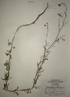 Users of this database should be aware that much of the taxonomic information was determined by students and faculty of Swarthmore College as many as 100 years ago, and as recently as 15 years ago. Taxonomic information contained in this database may be obsolete. We will be verifying this information and updating it if necessary in the near future. If you have suggestions or corrections, please e-mail rwallac1@swarthmore.edu. Thank you for your interest!