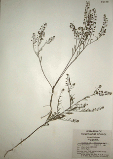 Users of this database should be aware that much of the taxonomic information was determined by students and faculty of Swarthmore College as many as 100 years ago, and as recently as 15 years ago. Taxonomic information contained in this database may be obsolete. We will be verifying this information and updating it if necessary in the near future. If you have suggestions or corrections, please e-mail rwallac1@swarthmore.edu. Thank you for your interest!