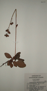 Users of this database should be aware that much of the taxonomic information was determined by students and faculty of Swarthmore College as many as 100 years ago, and as recently as 15 years ago. Taxonomic information contained in this database may be obsolete. We will be verifying this information and updating it if necessary in the near future. If you have suggestions or corrections, please e-mail rwallac1@swarthmore.edu. Thank you for your interest!
