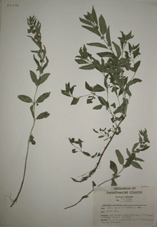 Users of this database should be aware that much of the taxonomic information was determined by students and faculty of Swarthmore College as many as 100 years ago, and as recently as 15 years ago. Taxonomic information contained in this database may be obsolete. We will be verifying this information and updating it if necessary in the near future. If you have suggestions or corrections, please e-mail rwallac1@swarthmore.edu. Thank you for your interest!