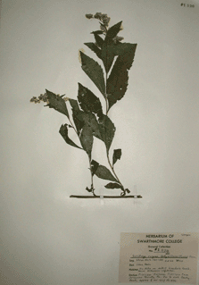 Users of this database should be aware that much of the taxonomic information was determined by students and faculty of Swarthmore College as many as 100 years ago, and as recently as 15 years ago. Taxonomic information contained in this database may be obsolete. We will be verifying this information and updating it if necessary in the near future. If you have suggestions or corrections, please e-mail rwallac1@swarthmore.edu. Thank you for your interest!