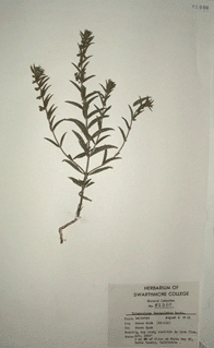 Users of this database should be aware that much of the taxonomic information was determined by students and faculty of Swarthmore College as many as 100 years ago, and as recently as 15 years ago. Taxonomic information contained in this database may be obsolete. We will be verifying this information and updating it if necessary in the near future. If you have suggestions or corrections, please e-mail rwallac1@swarthmore.edu. Thank you for your interest!